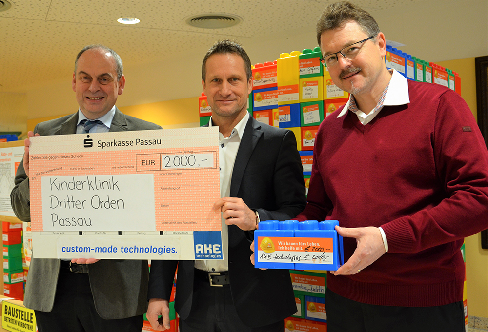 Schon bei der Konzeption unserer Anlagen und Werkzeuge achten wir auf Umweltverträglichkeit und Nachhaltigkeit. Unser Engagement erstreckt sich darüber hinaus auch auf den sozialen Bereich. So haben wir etwa nach der Jahrhundertflut im Juni 2013 mit einer großzügigen Geldspende dazu beigetragen, dass der von Wasser und Schlamm völlig verwüstete Kindergarten in Passau-Hals wieder saniert werden kann. Jährlich unterstützen wir Projekte, bei denen Kindern in Not geholfen wird und Jugendliche gemäß ihren Interessen gefördert werden. Auch bei zahlreichen Veranstaltungen zur Unterstützung von kranken und benachteiligten Mitmenschen nehmen wir gemeinsam mit unseren Mitarbeitern teil. Es freut uns als Unternehmen sehr, dass auch das Team AKE hinter unserem Grundgedanken steht und „Social Responsibility“ lebt.